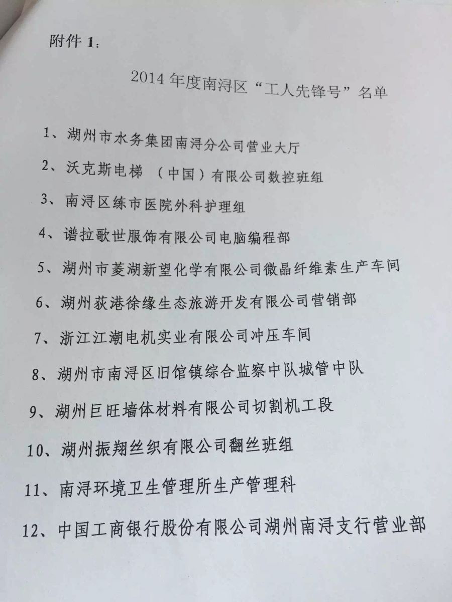 熱烈祝賀公司獲得南潯區(qū)“工人先鋒號(hào)”榮譽(yù)稱號(hào)